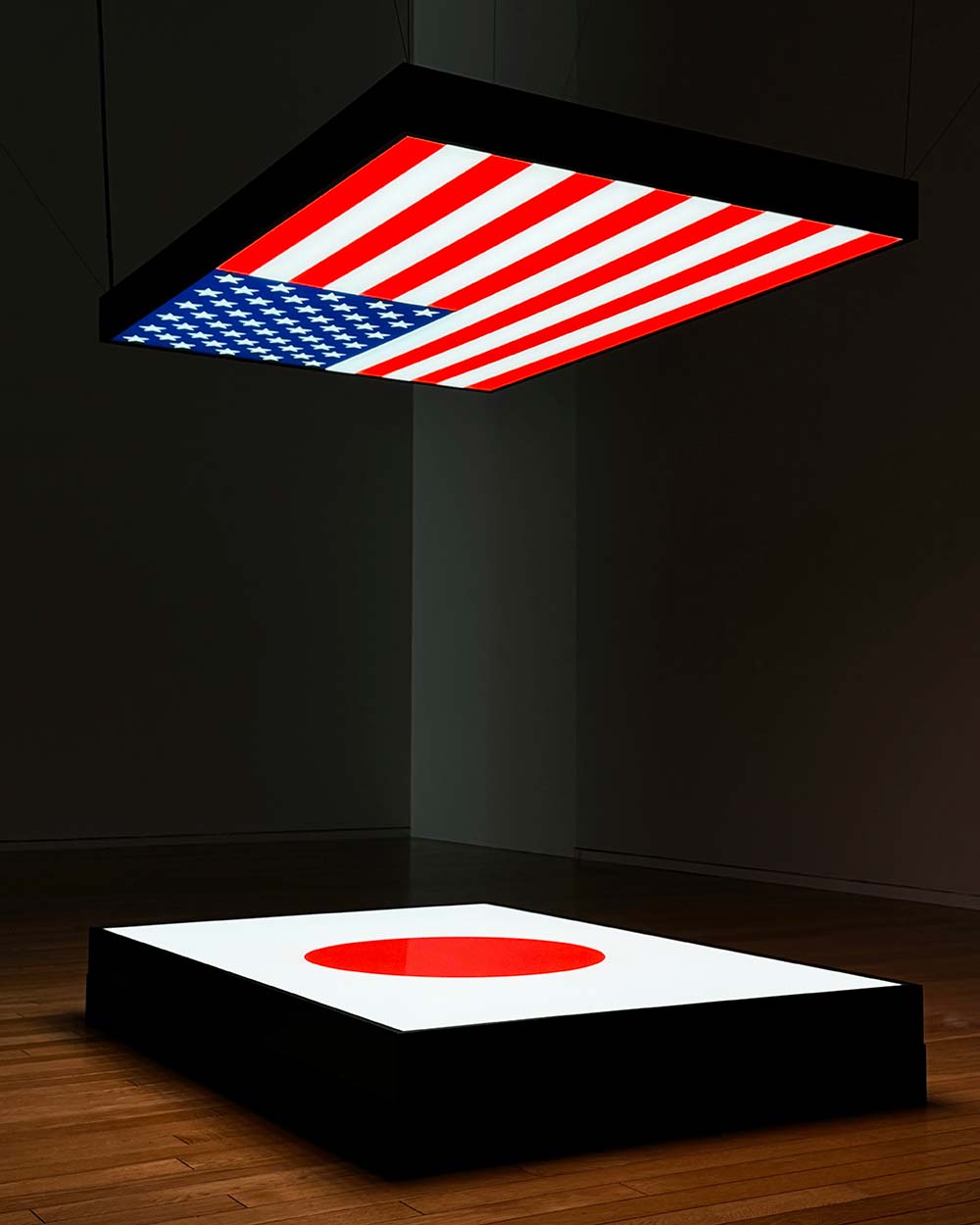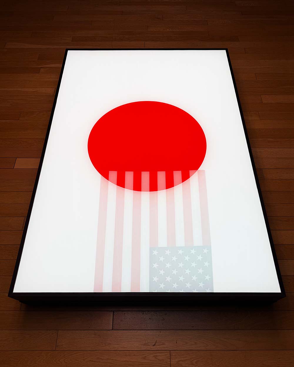 《明日は明日の陽が昇る》は、要素を極限までそぎ落としながら強烈なメッセージを放つジャーの作品制作の真骨頂ともいうべき作品です。ジャーは本作において、混乱と変革の時期にある現在の日米、および世界との関係へと思考をうながします。